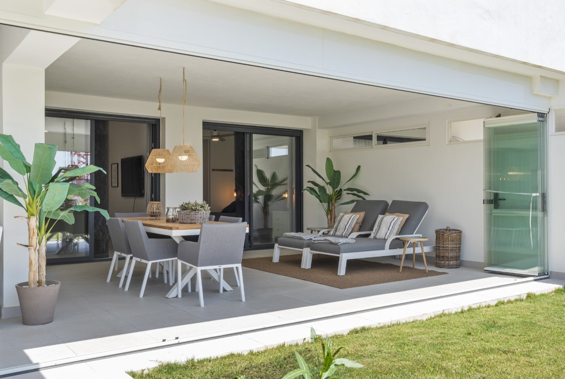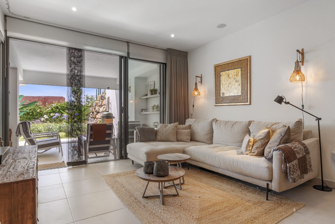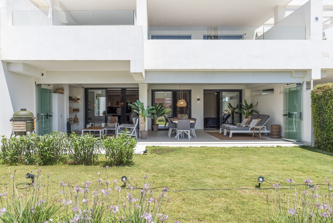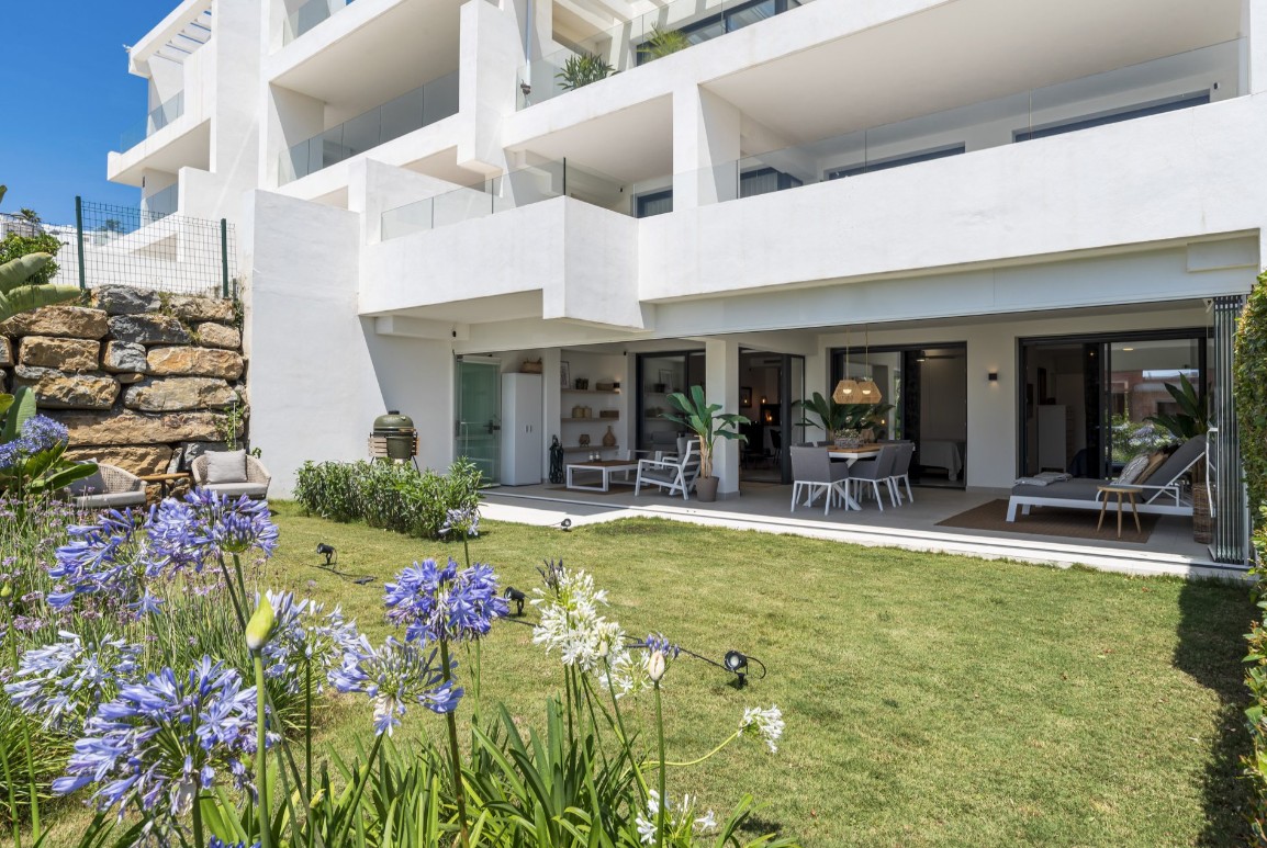 Precioso y contemporáneo apartamento de 2 dormitorios en planta baja, ubicado en la cotizada urbanización Mirador del Golf, junto al Club de Golf de Estepona. Construida en 2021, esta propiedad combina diseño moderno, comodidad y privacidad en un entorno tranquilo a pocos minutos de Estepona centro, la playa y todos los servicios.