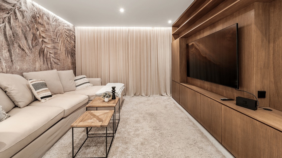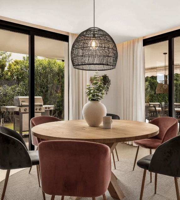 Grandes puertas corredizas de vidrio que brindan luz natural a toda la villa.