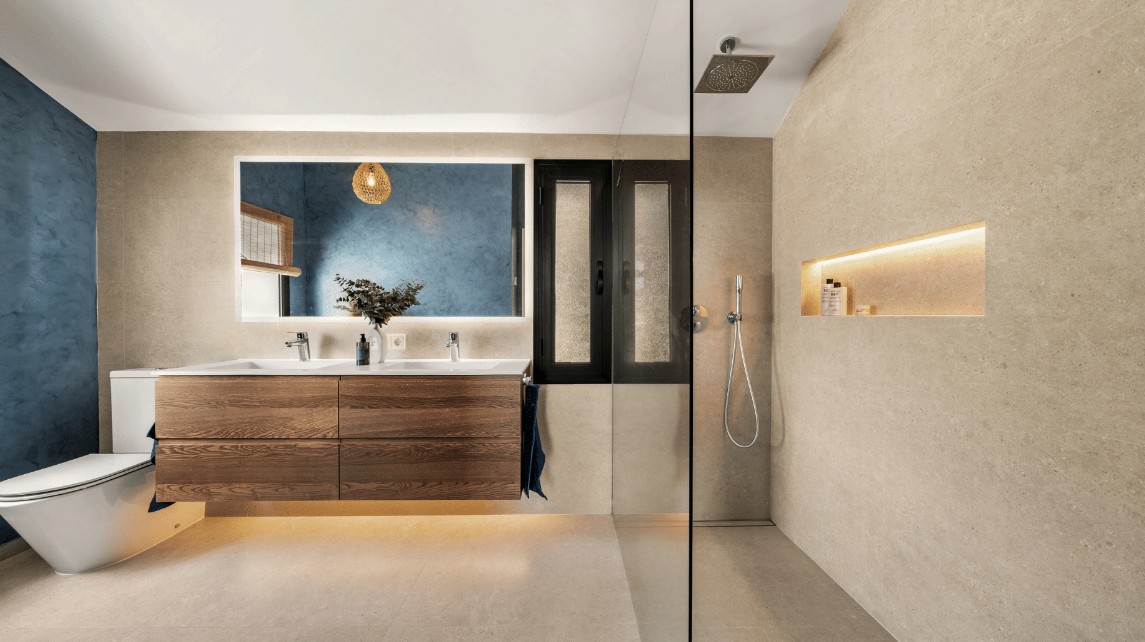 Sistema de aire acondicionado Airzone donde usted personalmente asegura el control de la temperatura en toda la villa. Amplia terraza, parcialmente cubierta, piscina privada y ducha exterior.