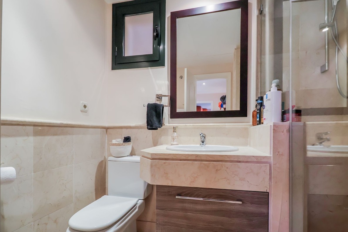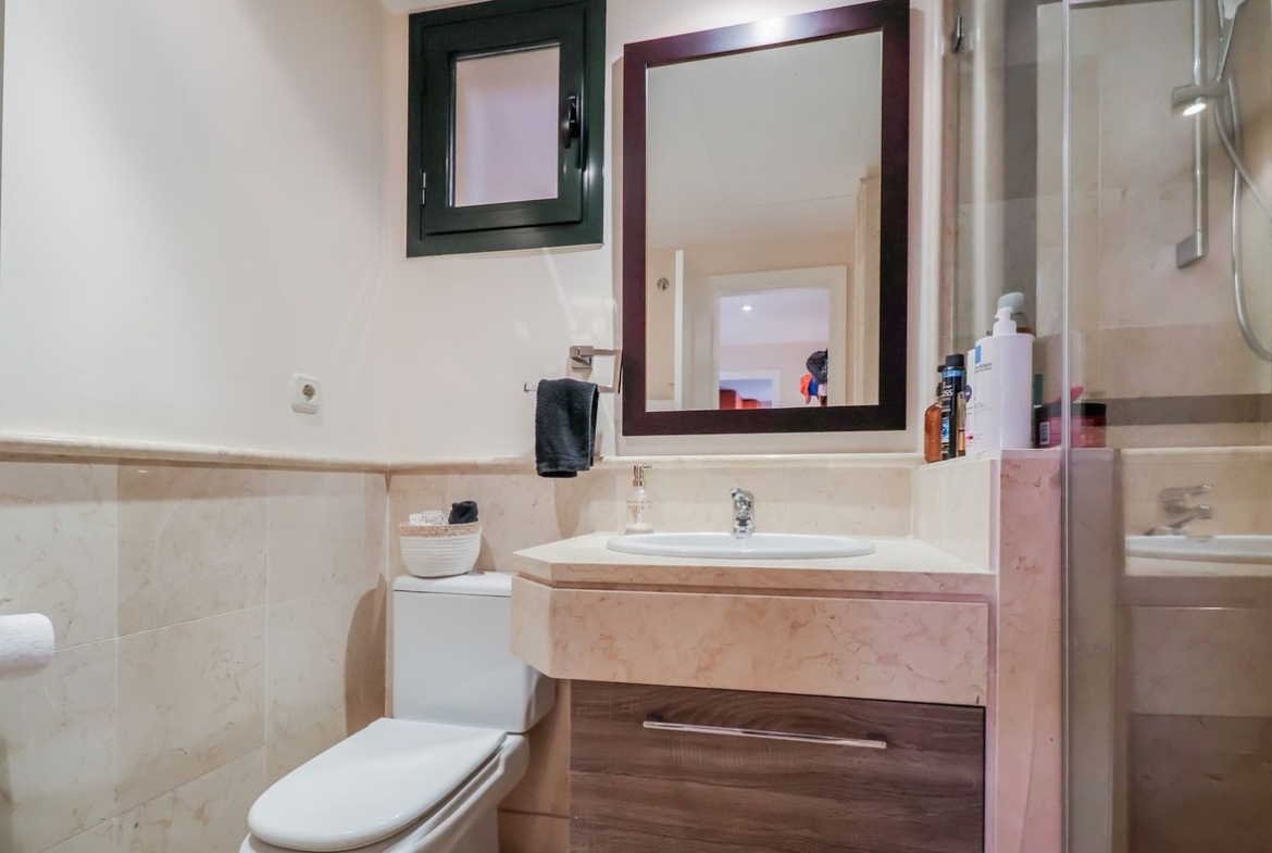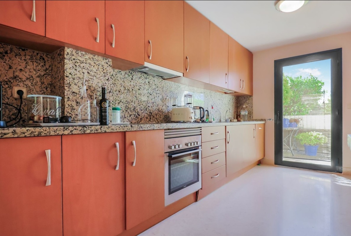 Los dos dormitorios cuentan con baños en suite, garantizando confort y privacidad. La amplia terraza es perfecta para disfrutar del clima mediterráneo, ya sea tomando el sol por la mañana o relajándose al atardecer con vistas abiertas al entorno natural.
