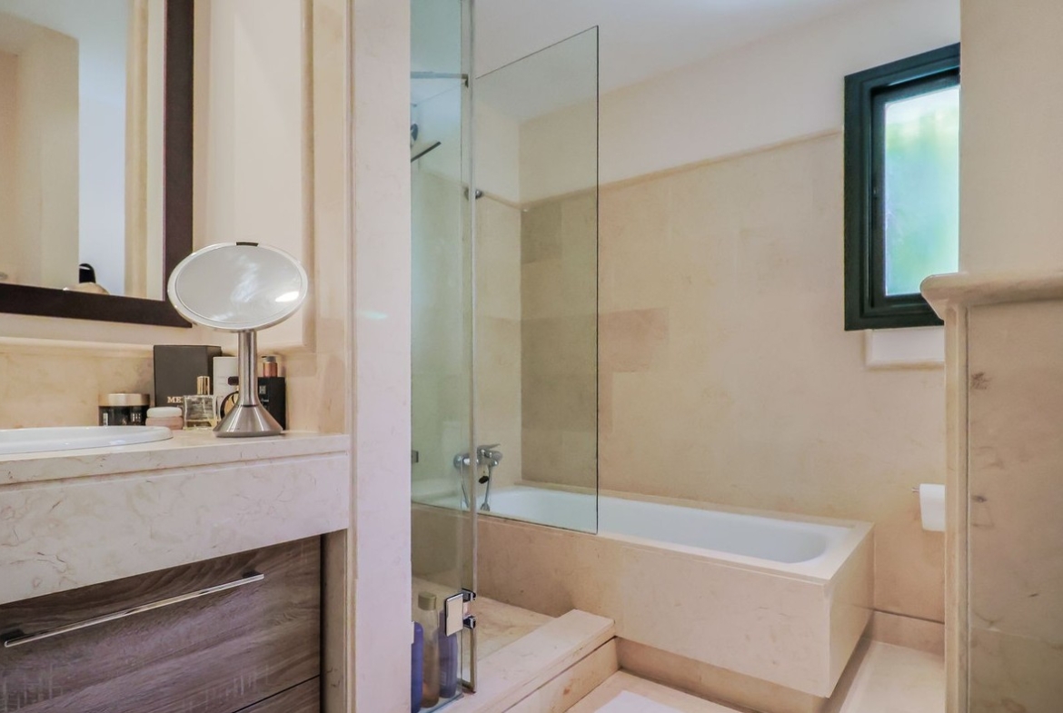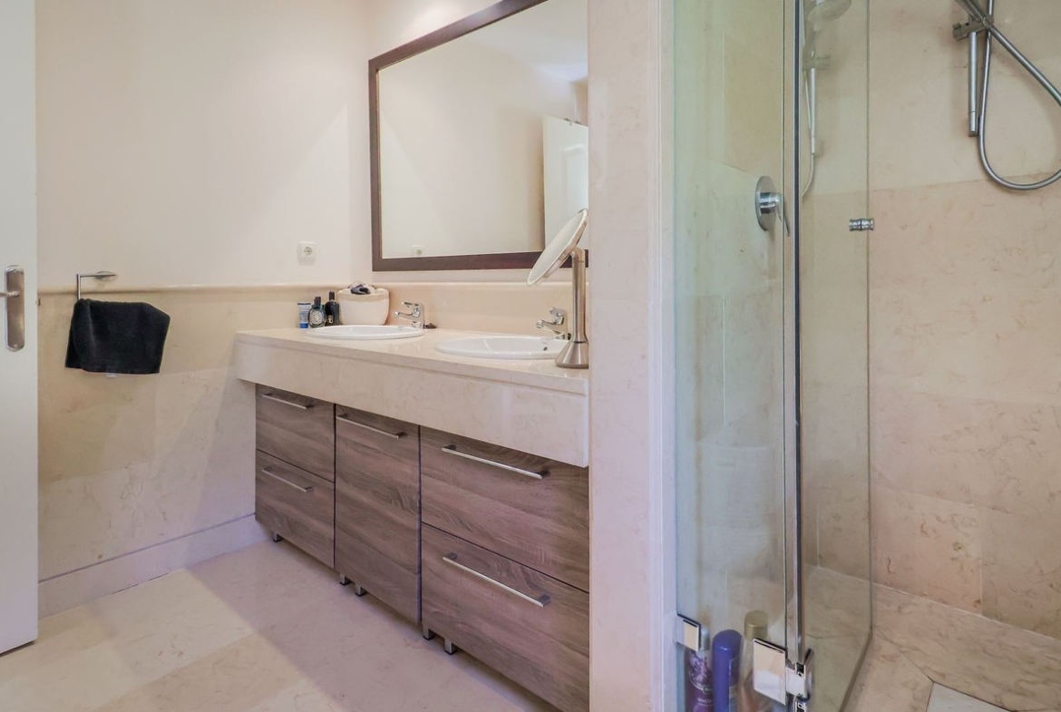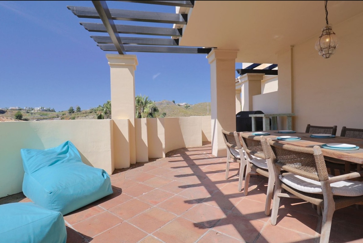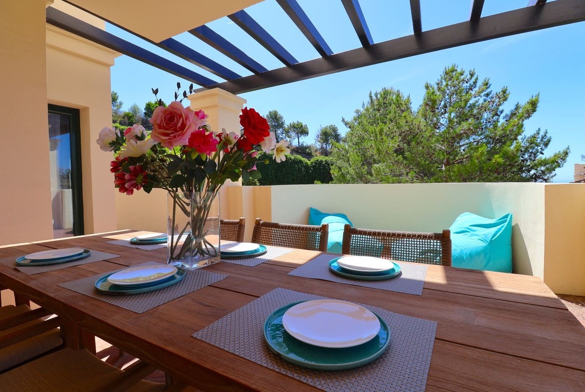Los dos dormitorios cuentan con baños en suite, garantizando confort y privacidad. La amplia terraza es perfecta para disfrutar del clima mediterráneo, ya sea tomando el sol por la mañana o relajándose al atardecer con vistas abiertas al entorno natural.