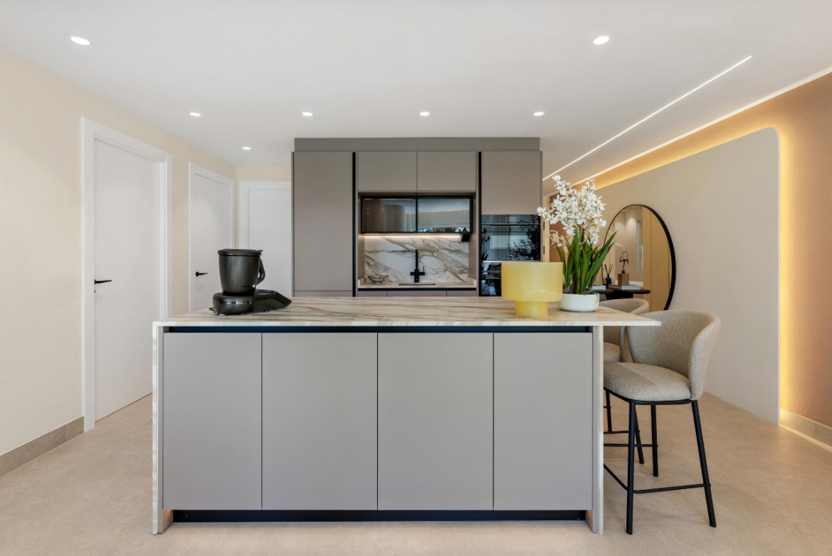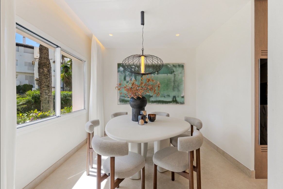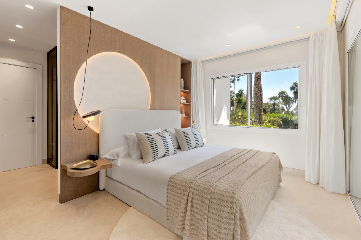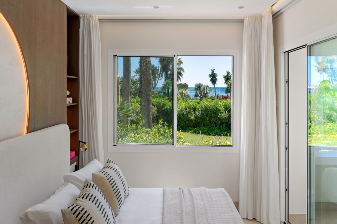 Vive el Mediterráneo desde primera línea en esta exclusiva propiedad totalmente reformada, ubicada en una urbanización privada con seguridad 24 horas en la Nueva Milla de Oro.