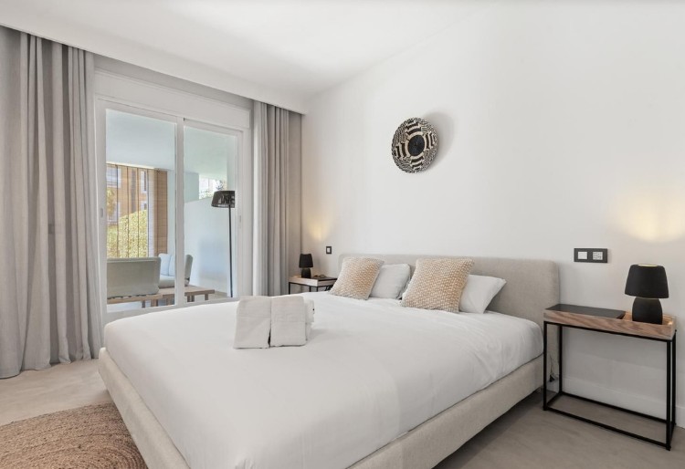 Este apartamento de lujo de dos dormitorios ofrece un diseño cómodo y funcional, con un salón-comedor amplio y luminoso y una cocina moderna totalmente equipada, que incluye un práctico lavadero independiente. El dormitorio principal cuenta con baño en suite, mientras que el segundo dispone de un baño familiar. Ambos dormitorios incorporan armarios empotrados que optimizan el espacio de almacenamiento.
