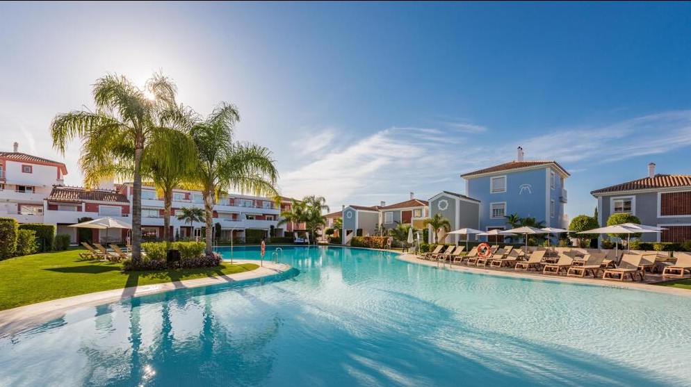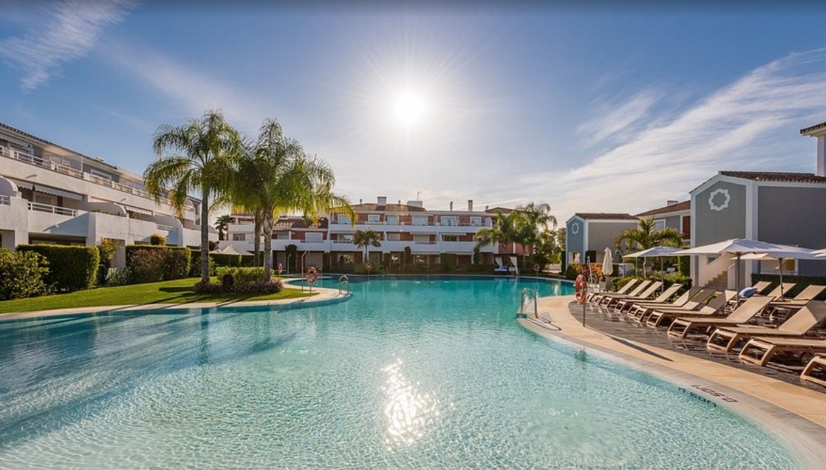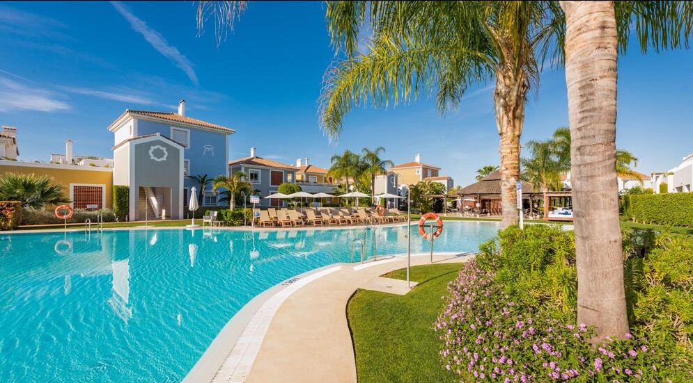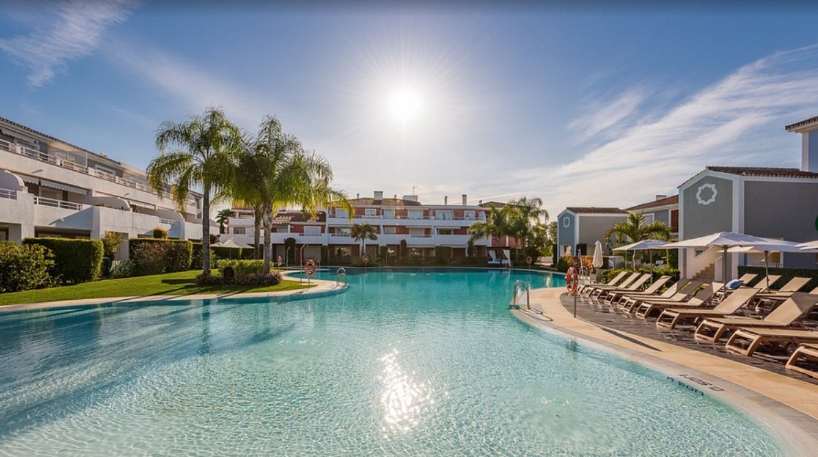 Los residentes pueden disfrutar de impresionantes piscinas comunitarias rodeadas de jardines tropicales, hamacas y un elegante bar de playa, ideales para relajarse y aprovechar el clima mediterráneo.